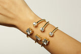 Everyone needs a little BLING in their life. This stack features 3 bracelets, gold hardware base with crystal accents at the tips. Let this stack be the conversation piece for any outfit!