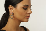 That REGAL look will cause a stir anywhere you go! Elegant navy teardrop earrings encrusted with pearl beads. You can’t ever go wrong with an elegant look like this.
