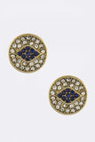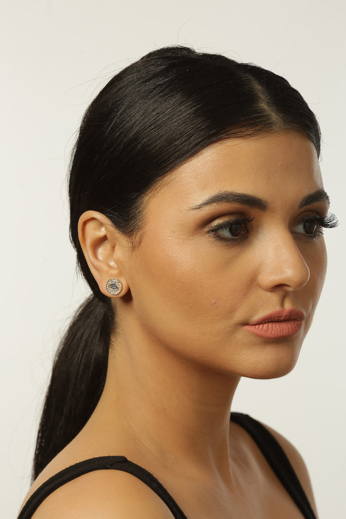 Our Sophia stud like earrings feature a pave crystal evil eye design with a classy round shape. These are the perfect earrings to rock with some ripped jeans and simple top.