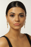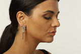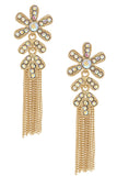 These earrings are the definition of a STARLET! Beautiful crystal lined earrings with an ultra-glam flower base and dangling chain fringe. All eyes will be on you with these stunners.