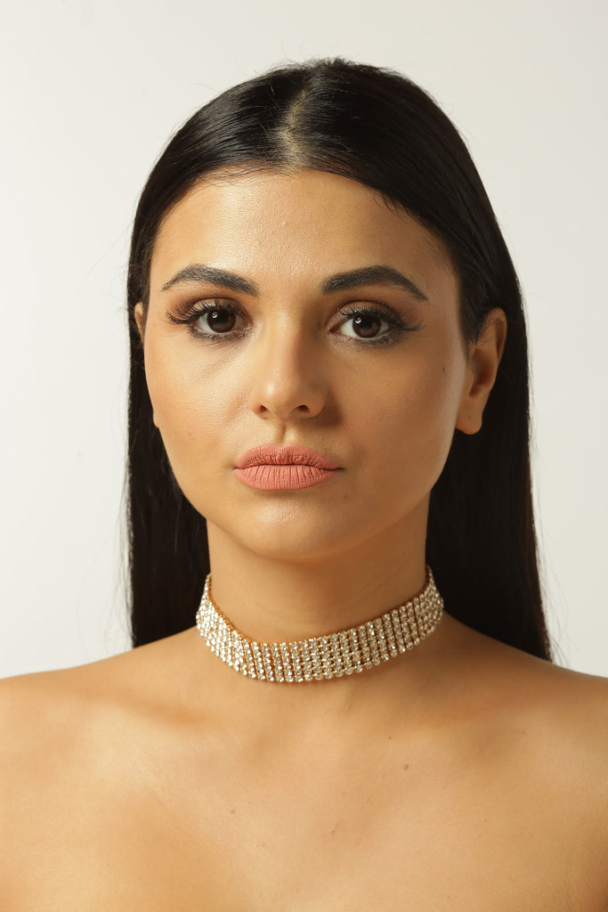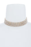Talk about being a Glamazon! This six row crystal studded choker features round crystals with a gold base accent. The perfect touch to glam up that party outfit.