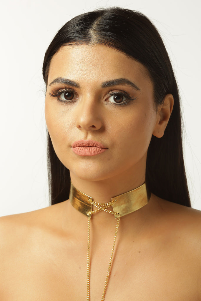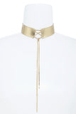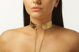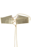 Let your neck drip in gold! This gold choker is accented by a metallic gold band with a laced up gold chain. All gold everythaaaang!